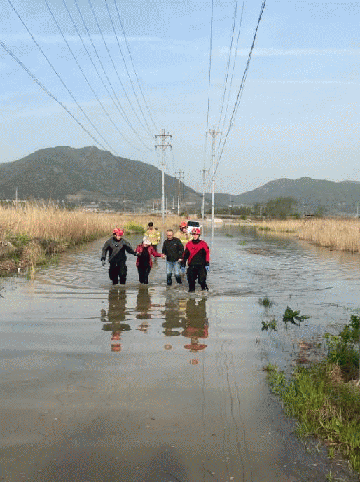 17일 07시 22분경 여수시 화치동에 밀물시간 물에 잠기는 농로를 인지하지 못하고 진행하여 농로 한가운데 고립된 상황을 신고 받고, 119구조대에서 건식잠수복 착용 후 요구조자 3명을 안전하게 안전지역으로 구조완료하였다.