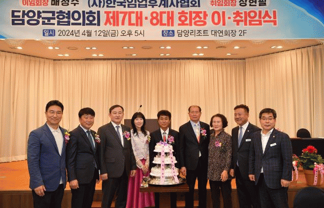 행사에는 이병노 담양군수를 비롯해 최용만 담양군의회 의장, (사)한국임업후계자협회 전남도지회장 등 임업후계자 회원 150여 명이 참석해 전임 배정수 회장에 감사를 표하고, 장현필 신임 회장을 축하했다.