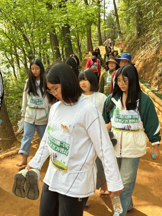 이번 걷기 행사는 보건소 치매 프로그램 참여 어르신, 치매 유관기관 종사자, 학생 등 지역주민 300여 명이 참석한 가운데 함평수산봉에 새롭게 조성한 ‘함평천지 맨발길’을 걷는 코스로 진행됐다.