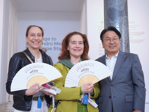 대표단은 앞서 16일 오전 밀라노 트리엔날레 뮤지엄을 방문해 알렉산드르 맨디니 유족인 두 딸과 로라 매런(Laura Maeran) 트리엔날레 국제전시 총괄 등을 차례로 만났다. 멘디니는 광주시청 광장에 설치돼 있는 작품 ‘기원’의 작가이다.