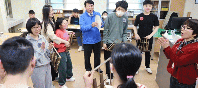특히 이 교육감은 음악교과 수업에서 1일 협력교사로 참여해 학생들과 함께 인도네시아의 민속 타악기인 앙클룽 연주를 함께했다.