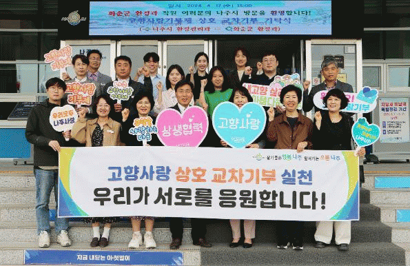 화순군 관계자는 “이번 상호기부를 통해 지자체 간 화합과 협력을 다지는 기회가 되어 긴밀한 우호 관계가 이어지길 바란다”라고 밝혔다