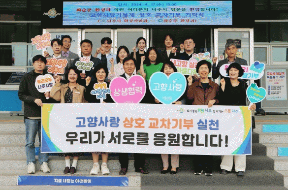 나주시 안상현 부시장은 “이번 상호기부를 계기로 양 시군의 환경 분야 우수시책을 교류하고, 상호 보완해 나가자”면서 “기부금이 지역경제 발전에 소중히 쓰일 수 있도록 노력하겠다”고 말했다.