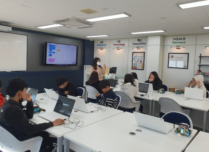 초등학교 5학년은 BASIC 과정으로 햄스터봇을 이용한 코딩 기초 프로그램을, 6학년은 SMART 과정으로 카미봇 파이와 티쳐블머신을 활용한 AI데이터 활용 코딩 프로그램을 운영한다.