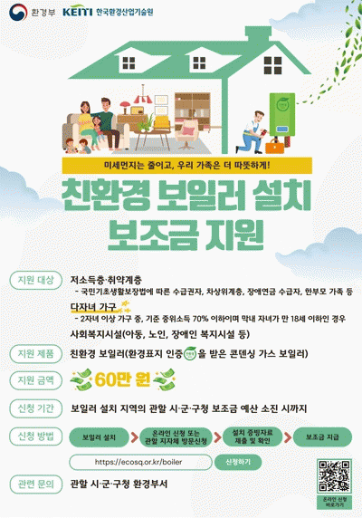 이범우 전남도 기후대기과장은 “친환경 보일러 교체는 에너지를 절감할 뿐만 아니라 미세먼지 및 온실가스를 줄이는 효과가 큰 만큼 도민이 관심을 갖고 노후 보일러를 친환경 보일러로 교체해 난방비도 절약하고 탄소 중립 실천에도 기여하길 바란다”고 말했다.