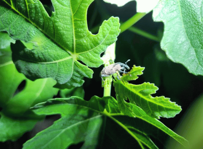 무화과곰보바구미 성충은 나무 밑동 주위 땅속에서 서식하다 야간에 줄기를 타고 올라가 어린잎이나 과실을 갉아 먹고, 유충은 나무 밑동 목질부에 구멍을 뚫고 들어가 심할 경우 고사에 이르게 하는 해충이다.