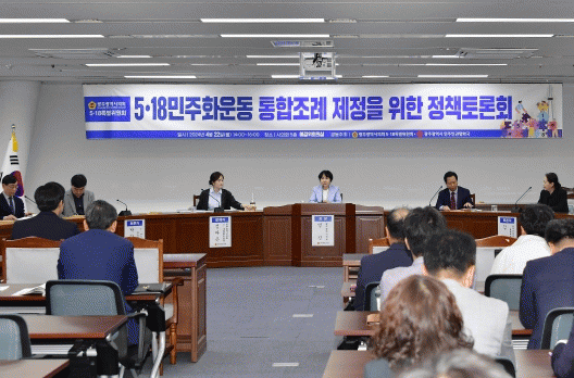 좌장을 맡은 명진 5·18특별위원회 부위원장은 “이번 정책토론회를 계기로 5·18민주화운동이 그동안 갈등에서 벗어나 화합의 시작 역할을 할 수 있는 통합조례가 탄생되길 바란다”고 말했다.
