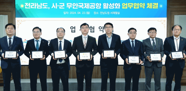 업무협약에선 명창환 전남도 행정부지사, 이상진 목포시 부시장, 민일기 영암군 부군수, 정현구 무안군 부군수, 임만규 함평군 부군수, 김정섭 영광군 부군수, 김재광 신안군 부군수, 김명신 전남관광재단 대표이사가 참석한 가운데 무안국제공항 및 관광산업 활성화를 위해 공동 노력하기로 했다.