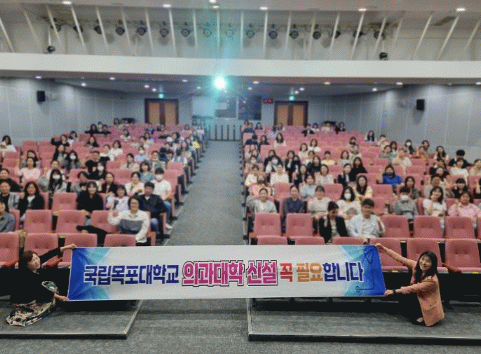 한편 이번 교육 후에 아이들이 건강하게 자라날 수 있는 환경 조성과 열악한 지역의료 여건 개선을 위하여 의과 대학 유치를 희망하는 학부모들과 목포대학교 의과 대학 유치 퍼포먼스를 펼쳤다.