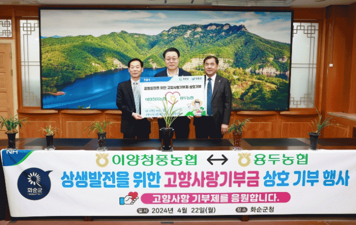 구복규 화순군수는 “화순군에 따뜻한 마음을 전해주신 이양청풍농협, 용두농협 임직원분들께 감사의 말씀을 전한다”라며, “두 농협의 인연이 지속되어 농업 발전에 이바지하기를 바라며 고향사랑 기부금이 화순에 가치 있게 쓰이도록 하겠다”라고 전했다.