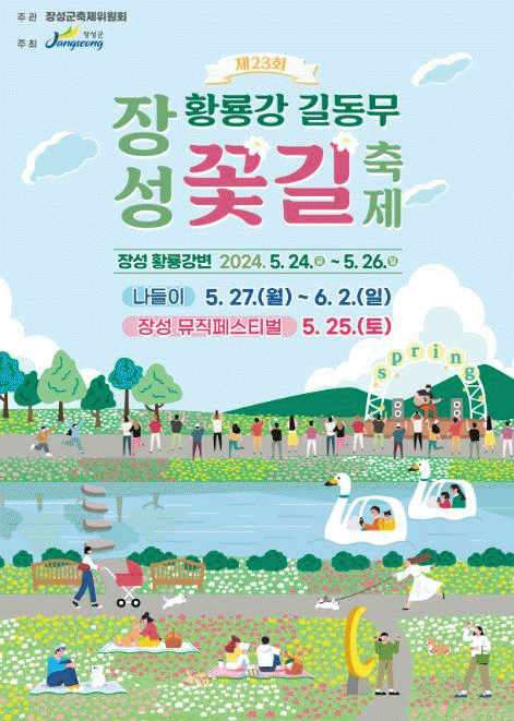 한편, 올해 장성 황룡강 길동무 꽃길축제는 주말인 5월 25일 저녁 ‘뮤직 페스티벌’을 새롭게 선보일 예정이어서 이목을 끈다.