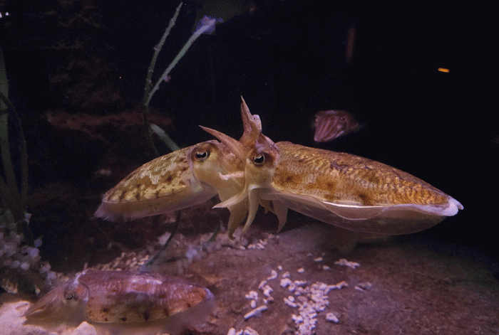 참갑오징어는 곧 산란기에 접어들기 때문에 운이 좋으면 수족관 안쪽에 붙어있는 알은 물론 직접 짝짓기 하는 장면도 볼 수 있다.