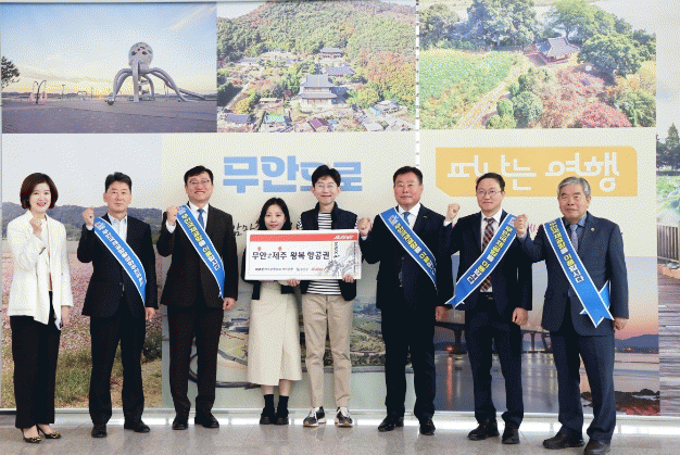 무안군과 제주항공, 한국공항공사 무안지사는 제주 정기노선 운항을 기념하기 위해 제주항공에서는 무안-제주 간 무료 왕복항공권 2매를 첫 번째 예약자에게 증정하고, 무안군과 한국공항공사 무안지사는 무안과 제주의 만남 분위기 형성을 위해 무안 특산품과 제주 삼다수를 모든 탑승객에게 증정했다.