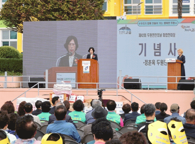 정춘옥 두원면장은 “6년 만에 개최된 이 자리를 통해 면민들이 결속과 화합을 다지고 두원면민으로서의 자부심과 긍지를 느낄 수 있는 뜻깊은 자리가 됐길 바란다”며 “두원면 지역발전과 행복한 면정, 따뜻한 면정을 펼쳐나가는 데 최선을 다하겠다”고 말했다.