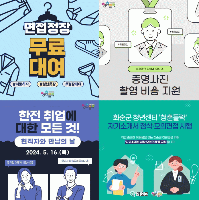 특히 화순군 청년센터 ‘청춘들락’에서는 지난 3월 'NCS 필기시험 대비' 특강을 시작으로 매달 외부 전문가를 섭외하여 다양한 분야의 취업특강을 진행하고 있으며, 센터에 직업상담사가 상주하고 있어 사전 신청만 하면 원하는 시간대에 취업 컨설팅, 면접지도, 비대면 상담 등을 받을 수 있다.