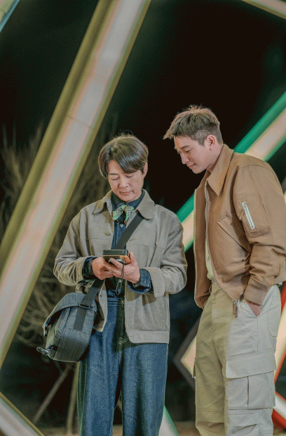 저녁에는 야경 감상이 이어진다. 황룡강 용작교, 미디어 아티스트 이이남 작가의 ‘축령의 사계’를 감상하며 어린아이처럼 즐거워하는 두 배우의 모습이 인상적이다.