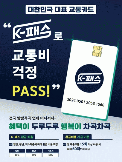케이-패스는 기존 ‘알뜰교통카드’를 대체한 사업이다. 시내버스, 지하철, 광역버스 등 대중교통을 월 15회 이상 이용하면 최대 60회까지 일반 20%, 청년층(19~34세) 30%, 저소득층 53%의 교통비를 이동거리와 무관하게 다음달 돌려받을 수 있다.