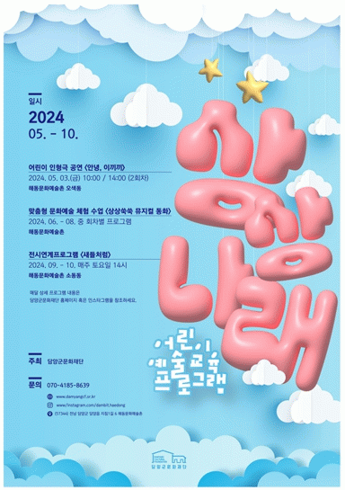 상상나래의 세부 프로그램은 (재)담양군문화재단 홈페이지와 소셜미디어를 통해 확인할 수 있다.
