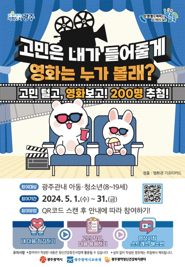 이번 캠페인은 광주광역정신건강복지센터와 함께 ‘고민은 내가 들어줄게, 영화는 누가 볼래’라는 주제로 ‘내 마음 점검하기’와 ‘고민 작성·마음 응원하기’, ‘스트레스 해소 영상 시청’으로 이뤄진다.