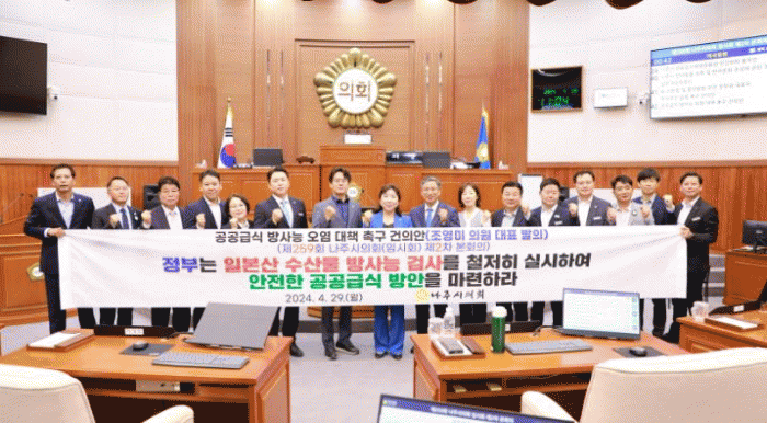 나주시의회는 이번 건의안을 통해 ▲정부는 방사능 노출 우려가 있는 일본산 수산물 식재료 검사를 수입 단계부터 철저히 실시할 것 ▲먹거리 안전에 심각한 우려가 있는 일본산 수산물을 공공급식에서 제외할 것을 촉구했다.