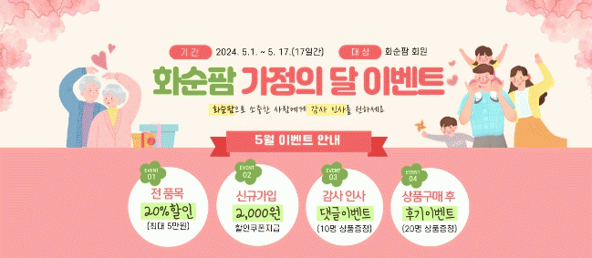 감사 댓글 이벤트는 화순팜 이벤트 게시판에 소중한 사람에게 감사의 마음을 전하는 댓글을 남기는 10명을 선정하여 2만원 상당 화순팜 상품을 지급한다.