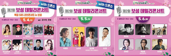 우선, 5월 4일에는 윤수현, 한해가 사회자(MC)로 나서 ‘SBS 러브 콘서트 in 보성’이 진행된다.