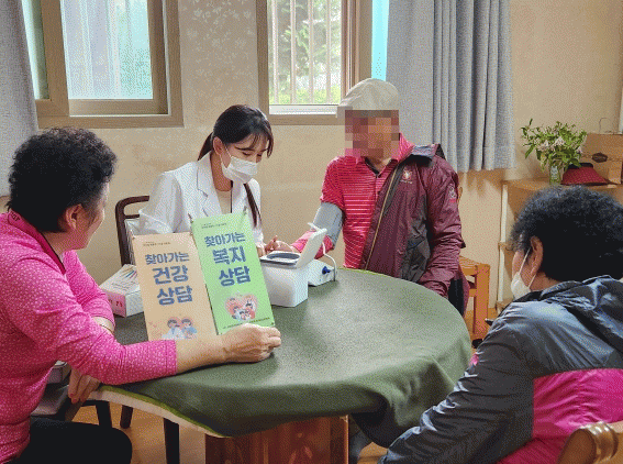 송정2동 간호직 공무원이 지역 경로당을 순회하며 혈압, 혈당, 콜레스테롤 등을 측정하고 이에 따라 맞춤형 건강상담을 제공한다. 사회복지직 공무원도 동행하며 광주+광산형 통합돌봄, 노인맞춤돌봄서비스 등 복지정보를 제공하고, 복지 사각지대 발굴 홍보를 한다.