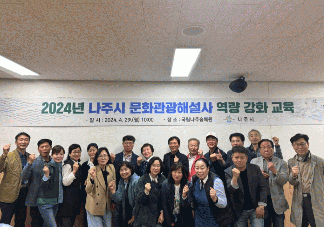 이번 교육은 나주시를 방문하는 관광객의 만족도를 높이고 관광 활성화를 위해 마련됐으며, SNS를 활용한 관광 홍보부터 해설 기법, 해설사의 역할과 자세까지 다양한 커리큘럼으로 진행됐다.