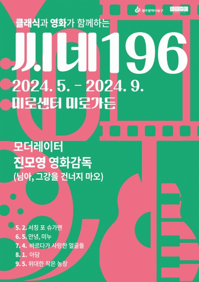 매월 첫 번째 목요일(오후 7~9시) 진행되는 ‘씨네196’은 클래식과 영화의 결합이라는 다채로운 문화 경험을 주민들에게 제공하고 기획됐으며, ‘님아, 그 강을 건너지 마오’의 진모영 영화감독이 참여해 깊이를 더할 예정이다.