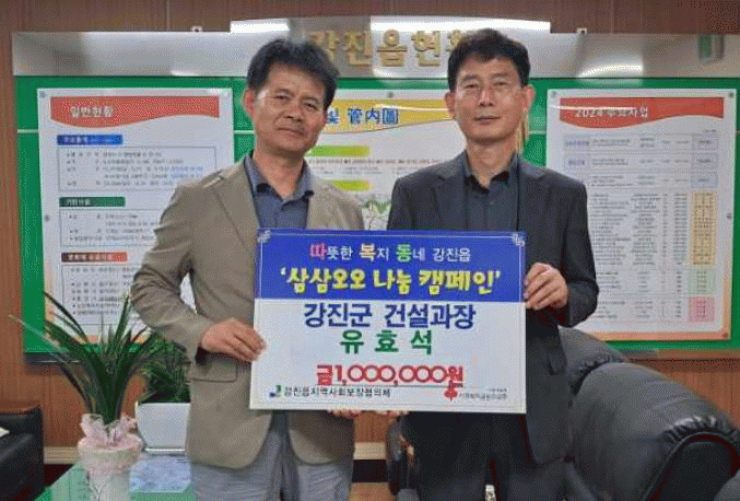 임준형 강진읍장은 “이웃을 위한 노력과 참여에 깊은 감사의 인사를 드리며, 이번 기부를 통해 지역사회의 복지 발전과 번영에 이바지한 유효석 과장에게 깊은 감사의 말씀을 전한다”라고 말했다.