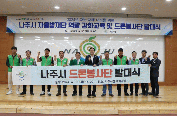 나주시 드론 봉사단은 자율방재단원 중 드론 자격증을 보유한 재능기부자 9명이 재난재해 및 축제 현장 등에서 드론을 이용해 안전, 환경보호, 화재예방, 유해환경 감시 등에 적극 나설 계획이다.
