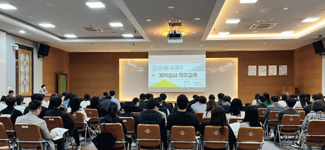계약심사 교육은 심사 기준, 소규모 개발사업 현장 점검 등을 계약심사팀장이 안내했다.
