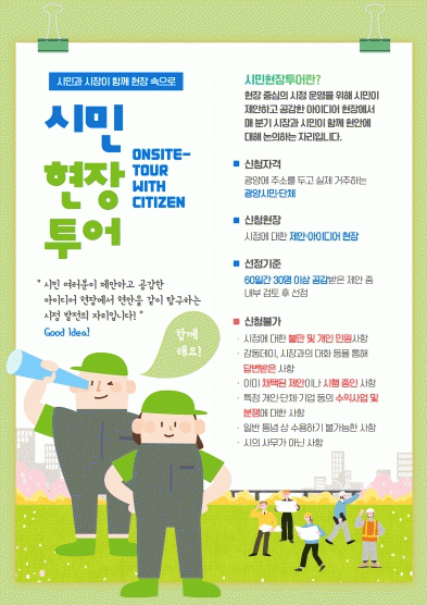 시는 의견을 제안한 시민과 담당 부서, 관련 전문가, 마을 주민 등과 같이 현장투어를운영함으로써 시민 의견에 대해 심도있는 논의를 진행하고, 투어 이후에도 지속적으로 해당 제안사항의 처리현황을 시민에게 전달하고 관리해나갈 방침이다.