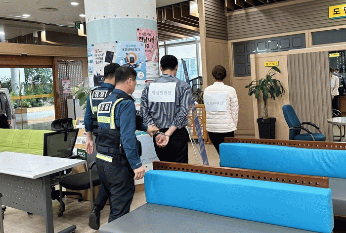 민원 응대 매뉴얼에 따라 민원인 진정과 중재를 시도하고, 녹취 및 촬영, 청원경찰의 제지, 비상벨 작동 여부 점검, 신속한 경찰서 상황 전파와 출동으로 가해 민원인 제압·연행, 방문 민원인 피해 예방과 담당 공무원 보호를 중점으로 이뤄졌다.