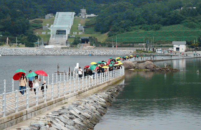 그러나 탐방객들이 장도를 연결하는 진섬다리를 건널 때 그늘이 없어 뜨거운 자외선이나 소나기 등을 피할 수 없어 불편을 겪어왔다.