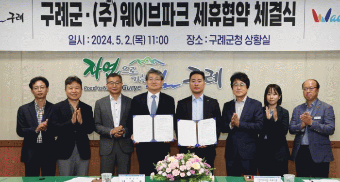 협약식에는 김순호 구례군수, 김윤준 웨이브파크 대표이사 등 주요 관계자가 참석했다.