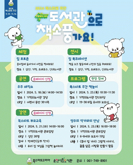 순천기적의도서관에서 북스타트 주간 행사로 우주 매직쇼(18일), 그림책 활용법 부모교육(21일), 북스타트 주간 책 놀이(23일), 가족 대상 정주희 그림책 작가와의 만남(23일)을 진행한다.