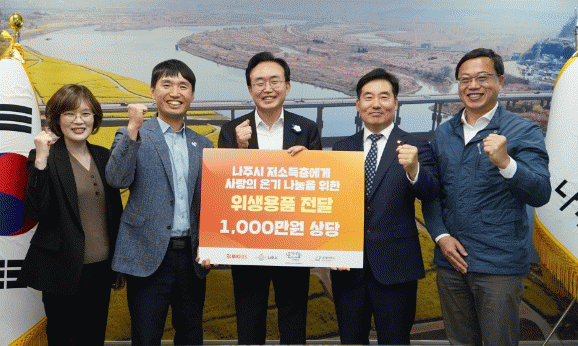 나주시는 양 기관이 사회?경제적으로 어려움을 겪고 있는 나주 취약계층을 위해 손 세정제 160통, 1000만원 상당의 가글?치약 1150개를 기탁했다고 20일 밝혔다.
