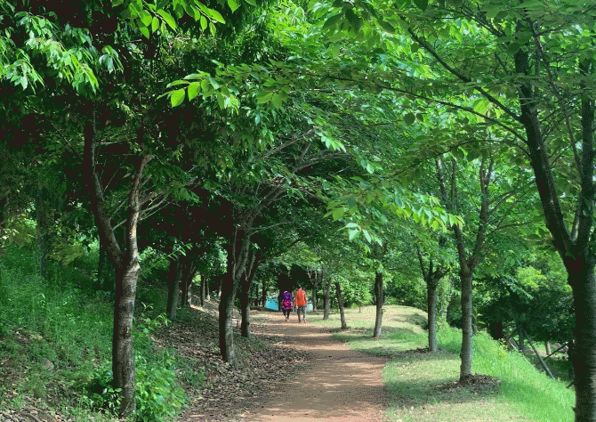 시에 따르면, 이달부터 오는 8월까지 공원 내 기존 산책로에 황토 포설 및 신규 맨발 황톳길(268m)을 조성하고 촉감 체험장, 세족장을 신규 설치한다. 또, 일부 산책로에는 가로등을 설치할 예정이다.