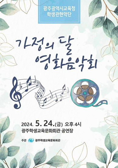 광주학생교육문회관 정은남 관장은 “음악은 단순히 듣는 것을 넘어, 무한한 감동과 희열을 선사하며 사람들을 이어주는 매개체가 된다. 이번 가정의 달 영화음악회가 사랑하는 가족과 함께 영화음악의 감동을 느끼며 따뜻한 시간을 보낼 수 있는 소중한 기회가 됐으면 한다..”고 전했다.