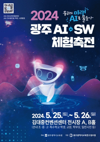22일 광주교육연구정보원에 따르면 이번 축전은 광주지역의 초·중·고·특수학교 학생, 교원, 학부모, 일반 시민 등 누구나 참여하여 즐길 수 있는 열린 행사로 “우리의 미래, AI로 물들다”를 주제로 생활 속 다양한 AI?SW교육 전시 및 체험 콘텐츠를 제공할 예정이다.