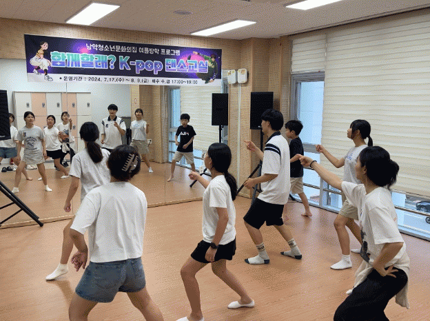 K-pop댄스 프로그램은 멋진 안무를 배우며 자신감을 키우고 건강한 여가 활동을 장려하기 위해 준비됐으며 지난 방과 후 운영에서 큰 호응을 받아 여름방학을 맞이하여 추가 운영하게 됐다.