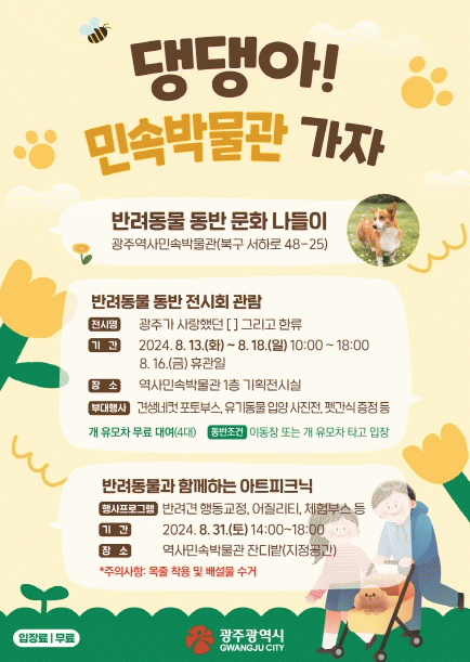 이 기간 광주역사민속박물관 1층 기획전시실에서 열리는 특별전 ‘광주가 사랑했던 [] 그리고 한류’에 반려동물과 함께 관람할 수 있다.