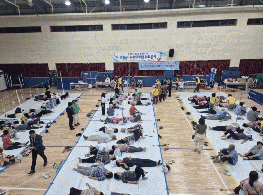 도(道) 전남건강버스 사업과 연계한 이번 의료봉사에는 순천의료원 김대연 원장을 비롯한 순천의료원 의료진, 보건소 직원 등 20여 명이 참여해 인근 지역주민 100여 명을 대상으로 무료 진료, 건강상담, 영양수액 등의 의료서비스를 제공했다.