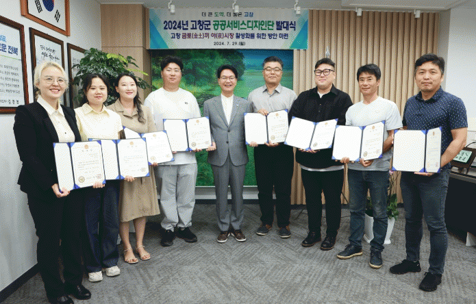 29일 고창군에 따르면 이날 오전 군청 회의실에서 ‘2024년 고창군 공공서비스디자인단 발대식’을 열었다. 정책디자인단은 군민, 서비스디자이너, 전문가, 공무원 등 12명으로 꾸려졌다.