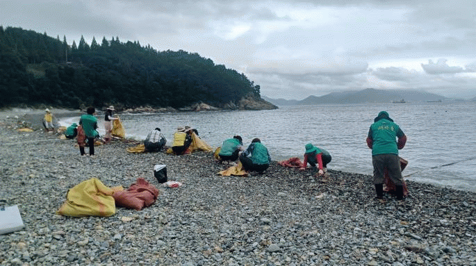이날 16명이 참여하여 해안에서 육지로 밀려온 해양쓰레기를 집중 수거하고 주변 버스정류장을 청소하는 등 깨끗한 관광지 조성에 앞섰다.