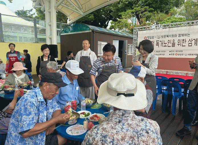 지난 26일 성산공원에서 열린 이날 행사에는 정기명 시장, 백인숙 시의회의장, 보문복지회 이사장 연규스님, 복지관 관계자 등 500여 명이 참석한 가운데, 정 시장은 삼계탕을 비롯해 과일, 떡 등 푸짐한 점심 식사 대접에 일손을 보탰다.