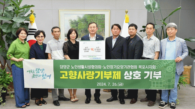 [뉴스맘] 담양군노인생활시설협의회(회장 하종삼)와 한국노인장기요양기관협회 목포지회(회장 홍건숙)가 고향사랑기부금 상호기부에 동참했다.