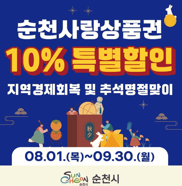 노관규 순천시장은 “이번 특별할인판매가 소상공인들에게는 매출 회복의 마중물 역할을 하고, 명절을 맞이하는 시민들에게는 경제활동에 도움이 되기를 바란다”며, “현재 경제적으로 어려운 소상공인들을 돕고 지역경제 성장의 버팀목 역할을 하는 순천사랑상품권에 시민들의 지속적인 사용과 관심으로 지역경제에 활력을 불어넣어주길 바란다”고 전했다.