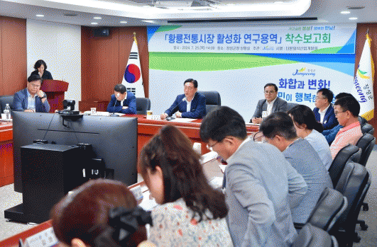군은 지난 25일 군청 상황실에서 김한종 장성군수, 심민섭 장성군의회 의장 및 의원, 상인회, 담당 공무원 등이 참석한 가운데 ‘황룡전통시장 활성화 연구용역 착수보고회’를 가졌다.